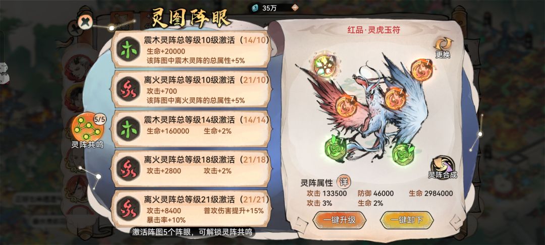 2. 庚金灵阵:庚金灵阵侧重于增加攻击加成和效果命中等属性,进一步提高天水刀的伤害加成和效果命中,使其在战斗中能够更有效地冰冻敌方或者施加禁疗、减速buff,提高容错率。