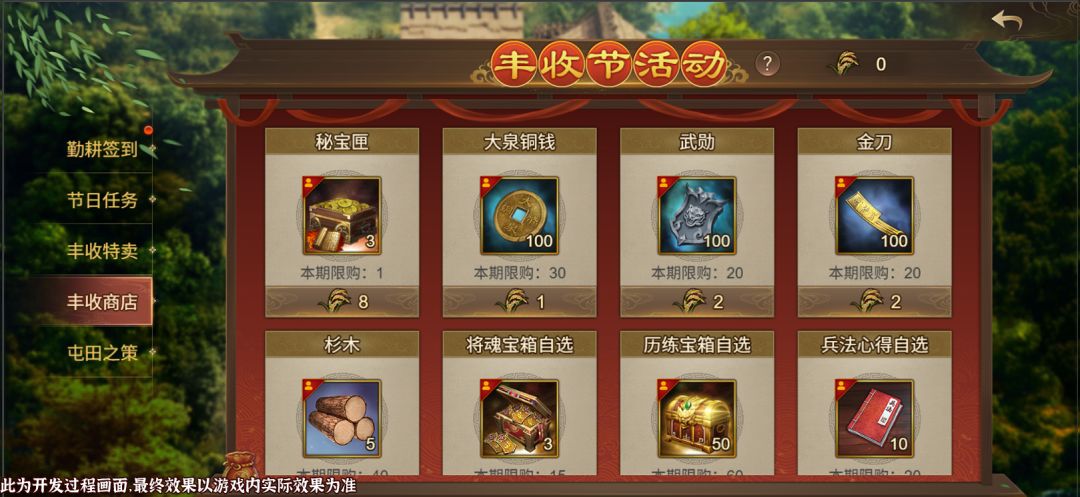 3、活动结束后,锄头、镰刀、粳稻 将自动清除,请各位主公及时使用;