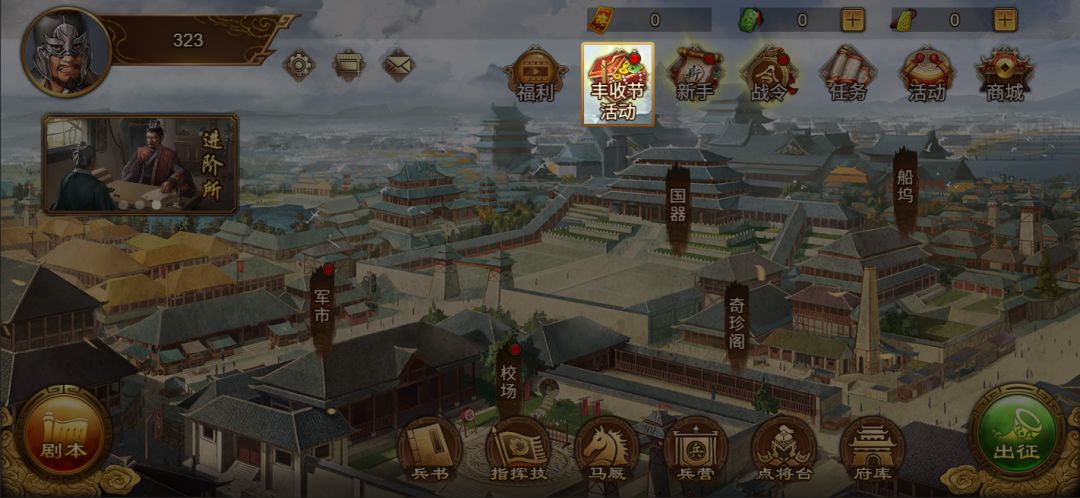 4月28日更新后,点击治所上方『丰收节活动』按钮即可进入活动。