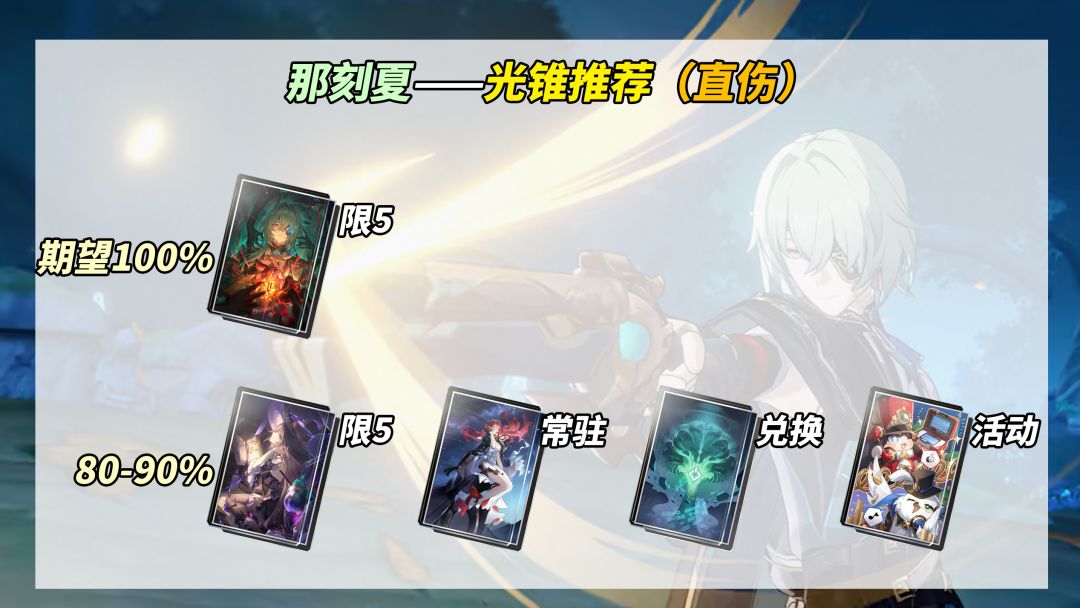 【光锥伤害期望】生命当付之一炬>90%>向着不可追问处>银河铁道之夜>不息的演算>宇宙大生意>80%>其他光锥。