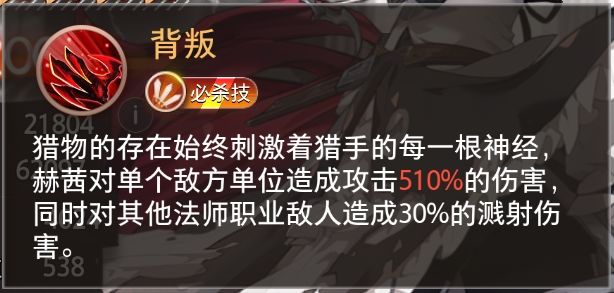 猎物的存在始终刺激着猎手的每一根神经,赫茜对单个敌方单位造成攻击510%的伤害,同时对其他法师职业敌人造成30%的溅溅射伤害。