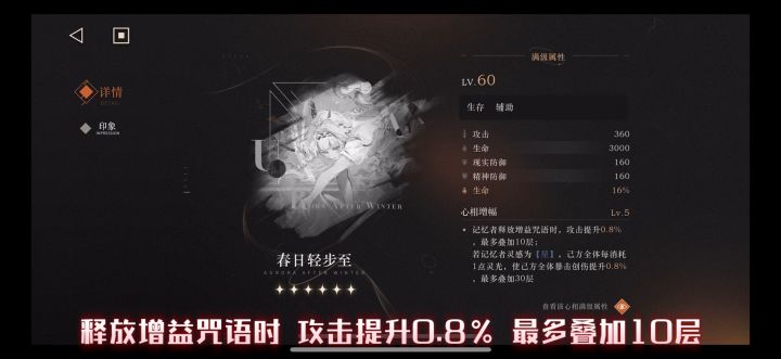 记忆者释放增益咒语时,攻击提升0.8%,最多叠加10层;