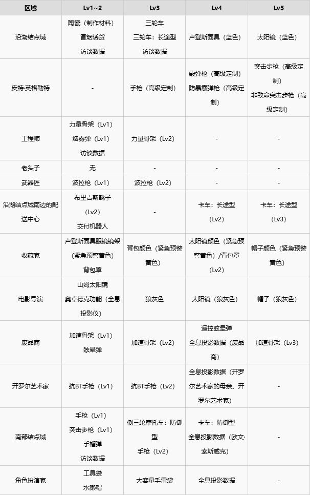 本作中的设施类似于其他游戏的据点,送货可以提升设施等级,你得到的点赞数越多,设施升级就越快。与只有1人居住的小型房屋相比,大型配送中心需要更多的点赞数才能升级。每座设施都有5个等级(在地图上显示为5颗星)。并非每升一级就会奖励你一张工具蓝图,当你把设施提升到一定级别后可获得新的装备颜色或访谈数据。