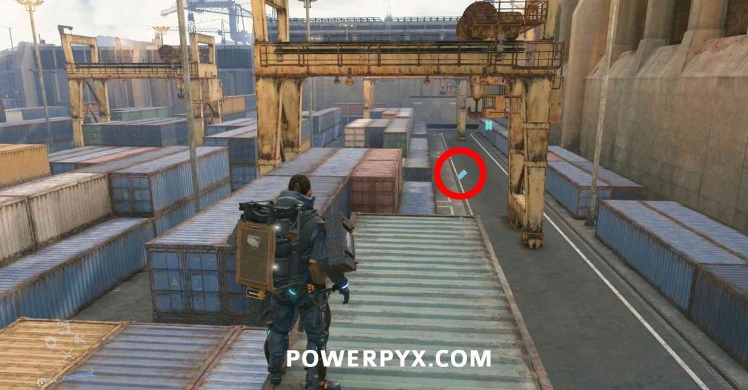位于【沿湖结点城】内,就在你坐船派送易碎品后第一次到达【沿湖结点城】时那个地方的集装箱顶部。