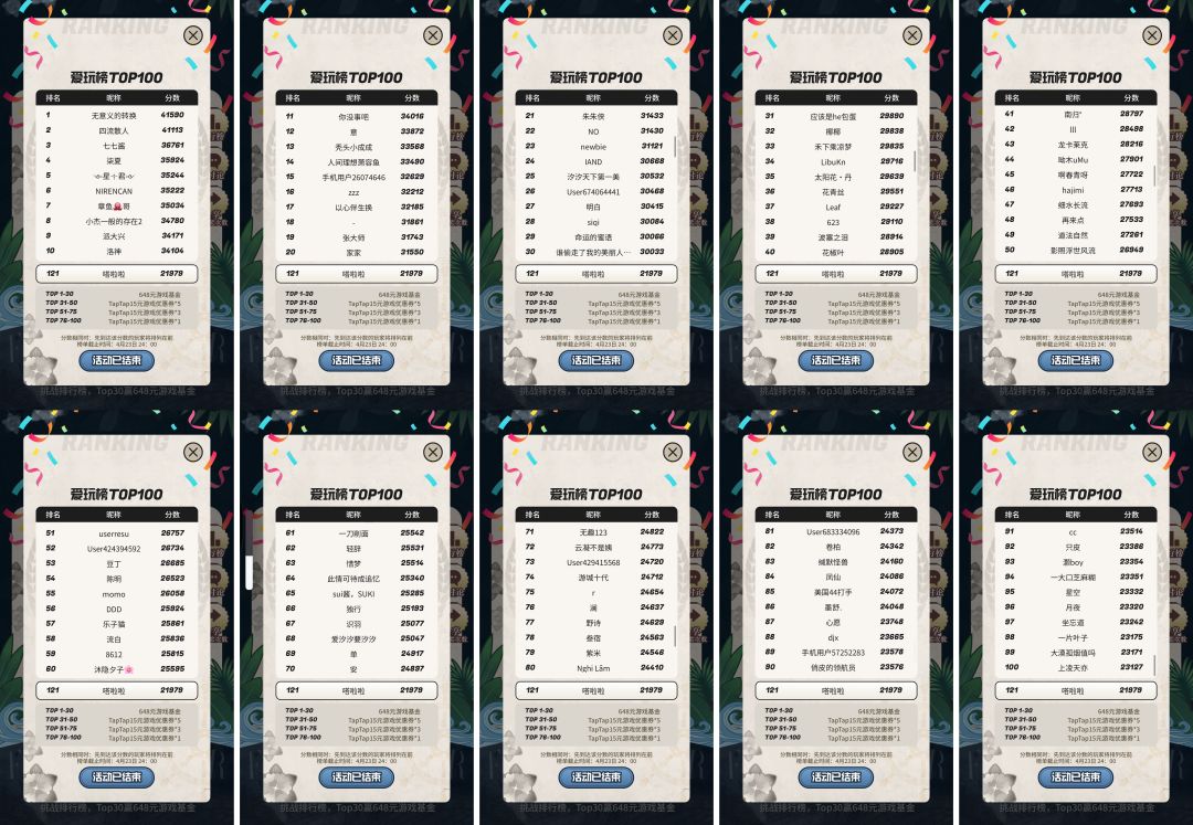 TapTap9周年活动现已结束,感谢大家的支持与参与,下面为大家公式爱玩榜TOP100名单。