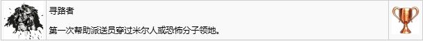 必须在完成一个任务之后的奖励界面才能触发此奖杯。