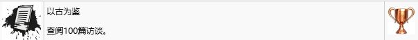 白金的过程中,为了解锁【最为喜爱】和【知识之源】这两个奖杯你需要将所有设施的连接等级达到最高并修复所有存储芯片,因此在解锁这两个奖杯后就会获得100篇访谈并自动跳杯了。