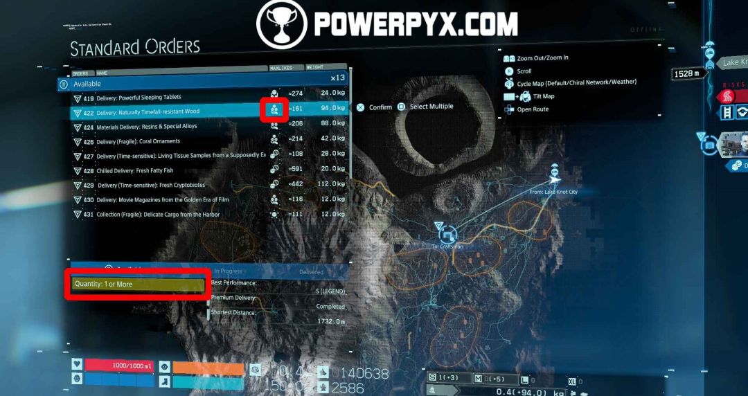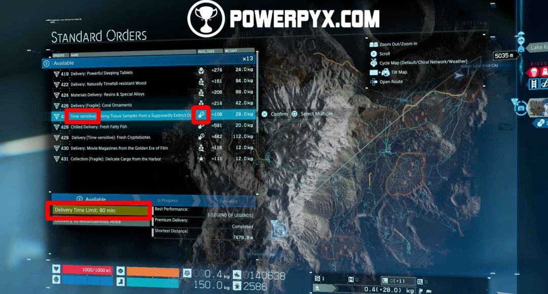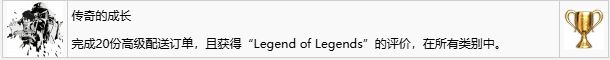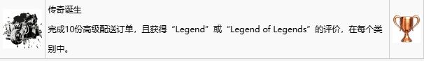 【标准订单】会显示最后他们会给你多少个赞,并且为了同时完成【传奇的成长(完成20份高级配送订单,且获得“Legend of Legends”的评价,在所有类别中)】奖杯,尽量获得【LoL】评价。
