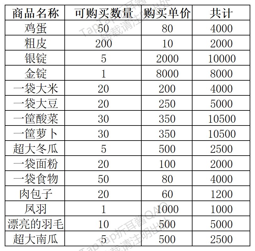 共有15种商品,商店中随机刷新其中的13个。每日05:00(现实时间)刷新,每次可以获取51200-70000铜币(排除随机高价商品)。