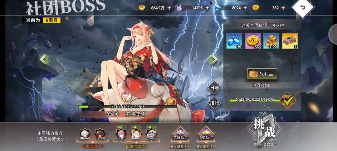 然后强力推荐伙伴是没有疲劳值限制的,每天可以无限次使用,一般每周的讨伐都会更新推荐伙伴