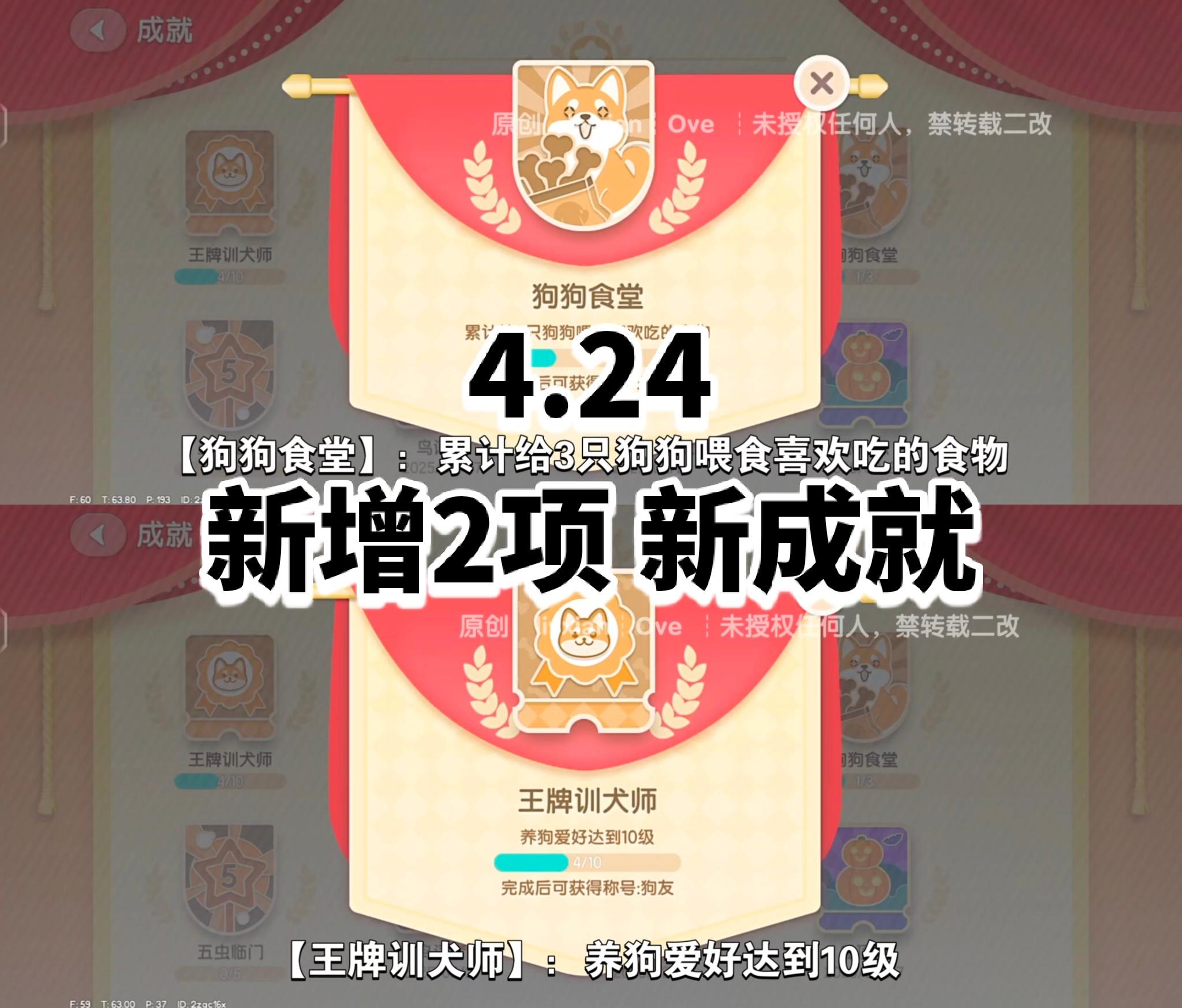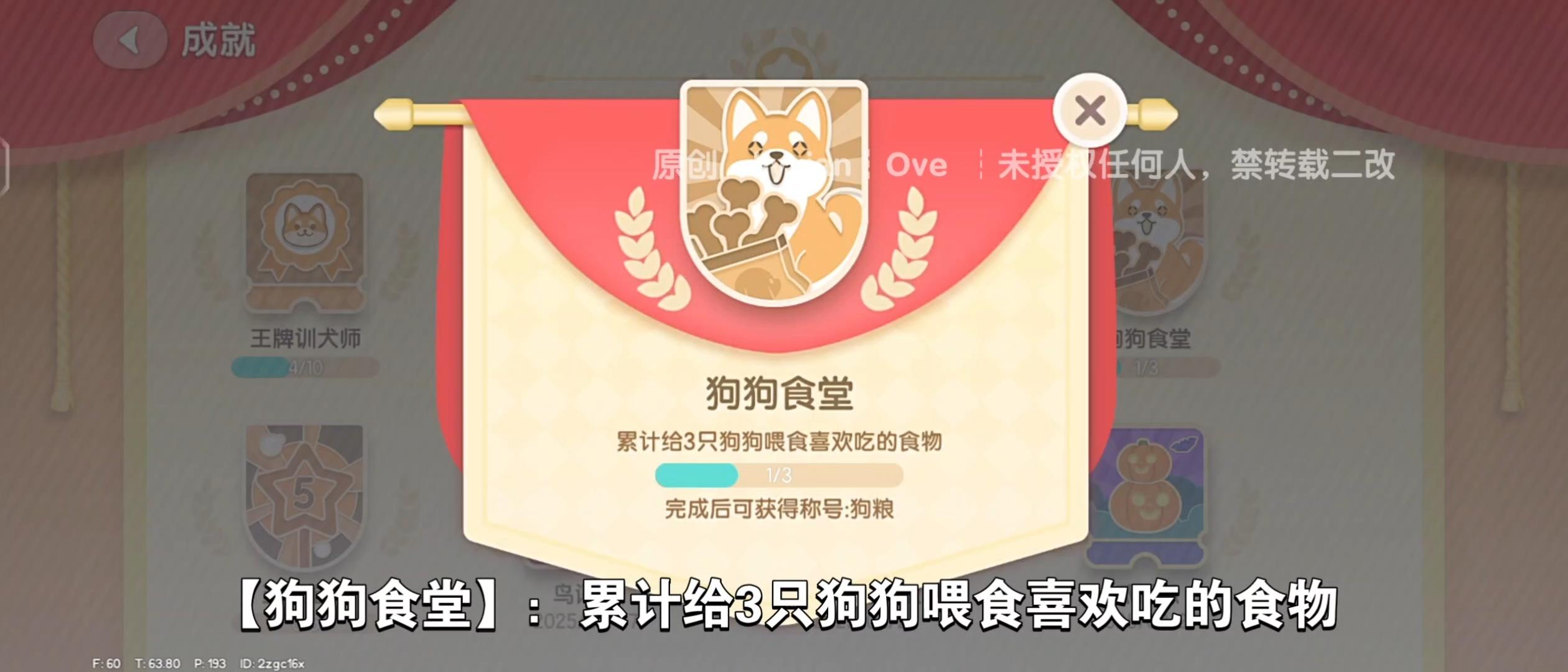 ①【狗狗食堂】:累计给3只狗狗喂食喜欢吃的食物