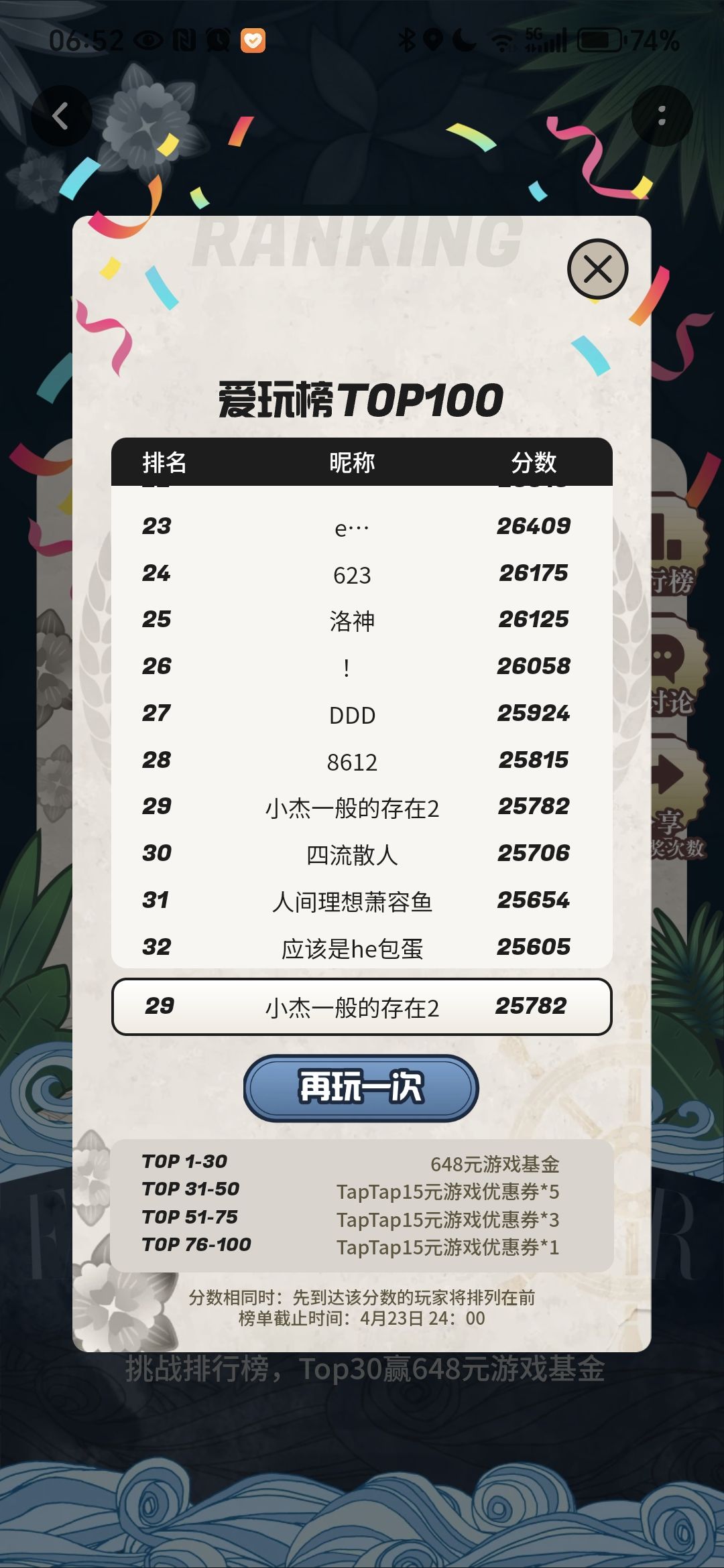 只拿到75块捏(26949分及以上)