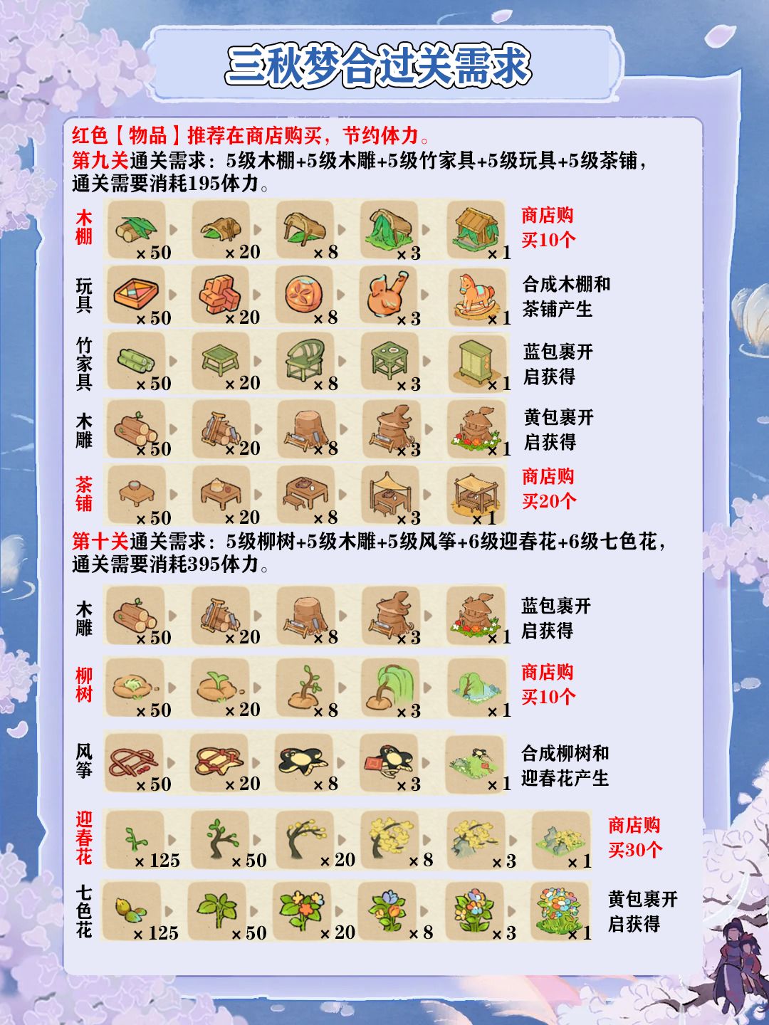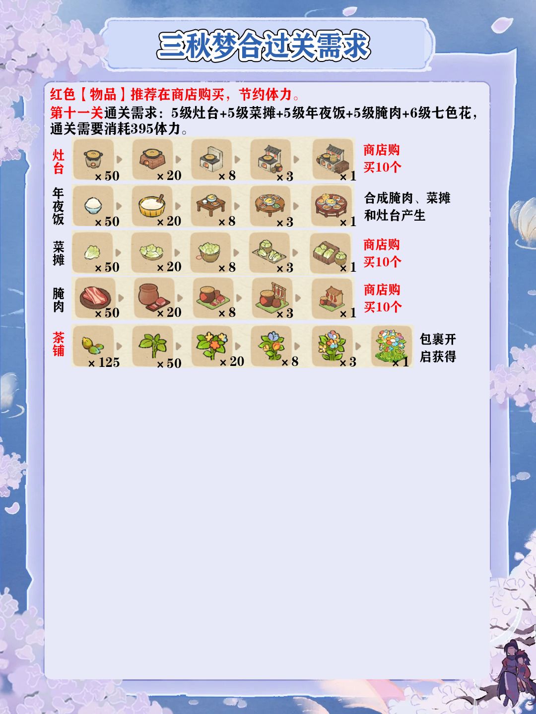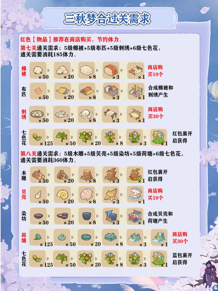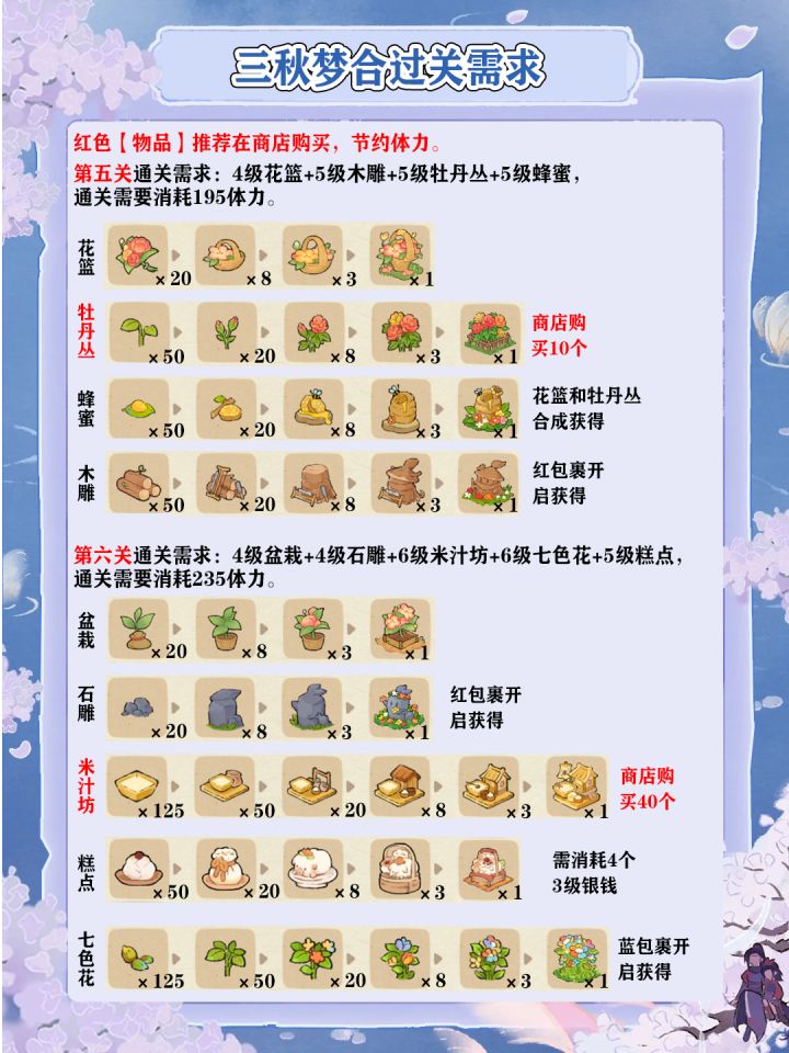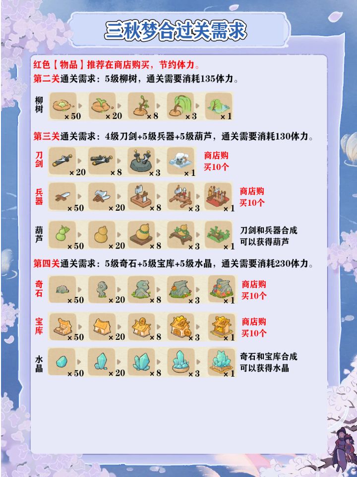 三秋梦合2-11关过关需求一览