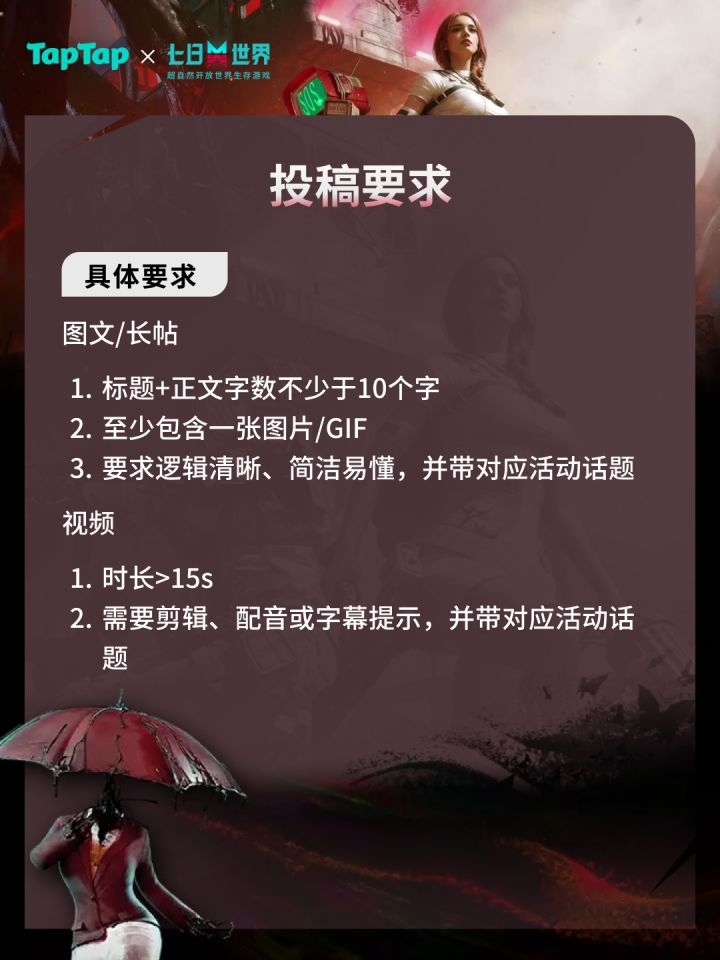 图文/长帖:标题+正文字数不少于10个字,至少包含一张图片/GIF,要求逻辑清晰、简洁易懂,并带对应活动话题
