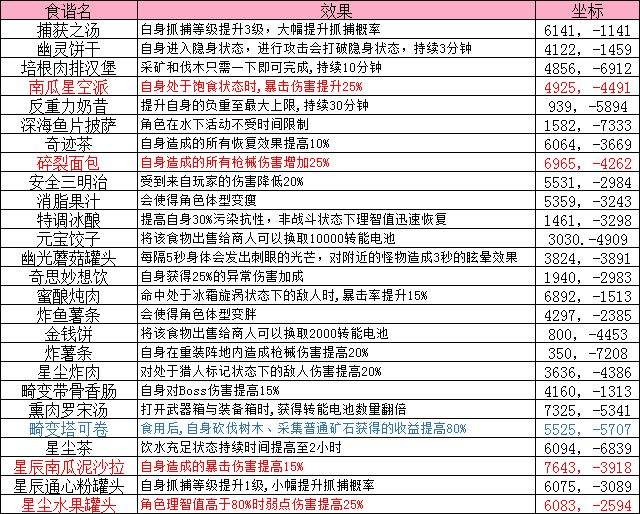 快去找这都是开荒效率翻倍的烹饪,南瓜星空派, 碎裂面包 ,星辰南瓜泥沙拉 ,星尘水果罐头 ,畸变塔可卷这几个开荒打怪神器配方。求点赞关注收藏