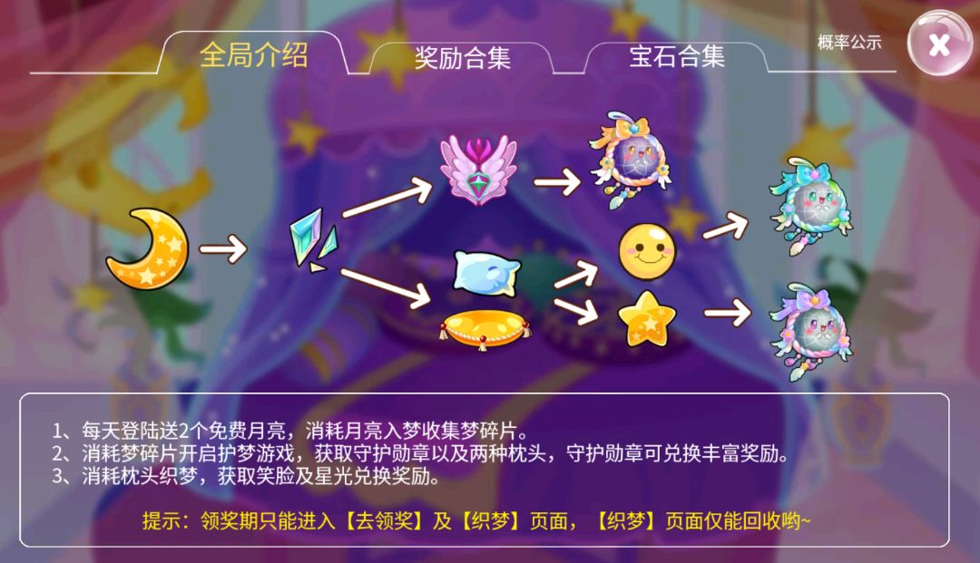 1、本活动分为三部分:入梦、织梦、奖励兑换;