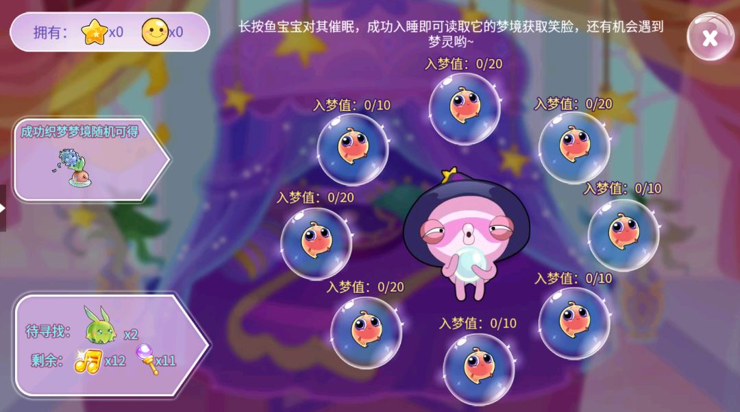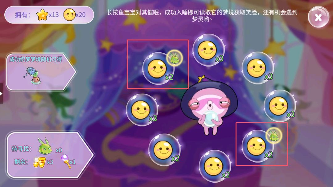 进入织梦后,长按鱼宝宝对它进行催眠,
