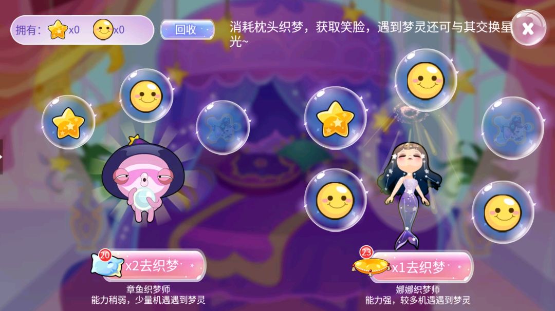 选择大章鱼或者娜娜公主,消耗对应的枕头进入织梦环节。