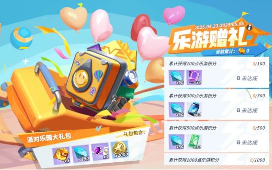 畅玩以上三个项目还能获取乐游积分,在乐园赠礼界面换取钻石、明星天赋卡等好礼,累计达到4000点时,还可收获派对乐园大礼包。
