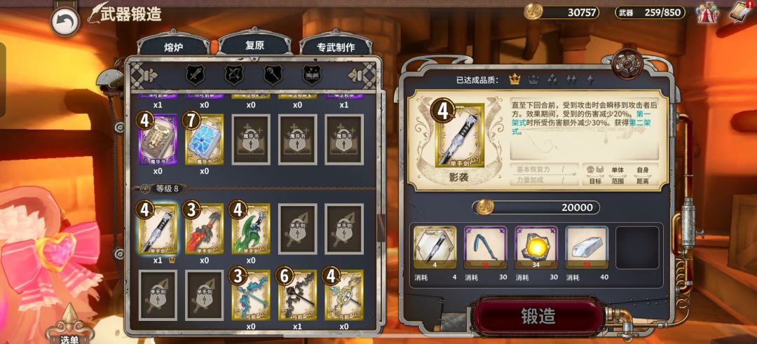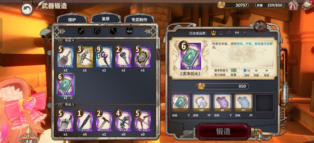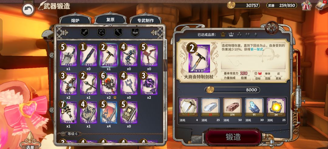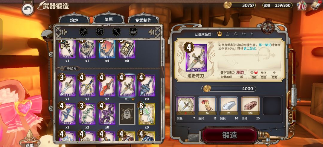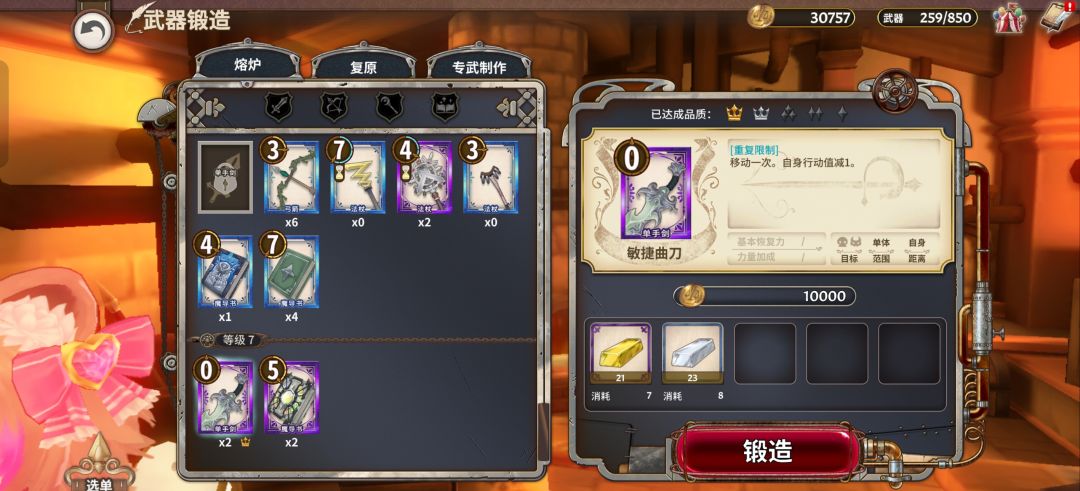 温馨提示:主线一直做下去这些武器都能自动解锁,值得一提把抽到的r级和sr级角色专武合成一下锻造等级就上来了