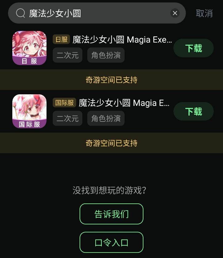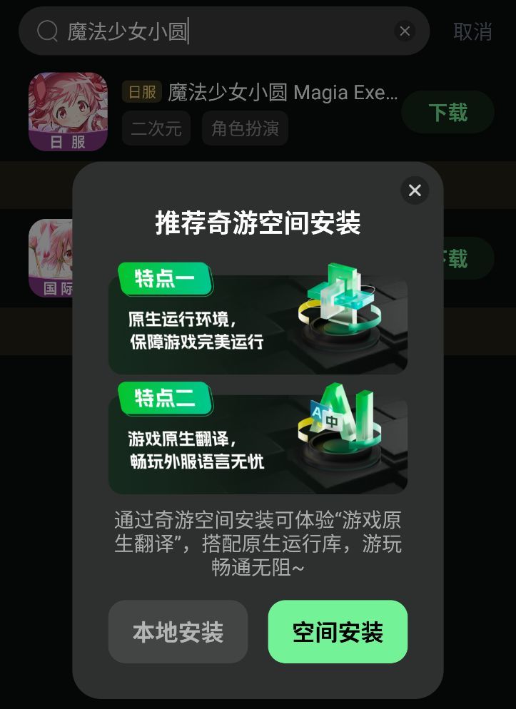 第三步:奇游内搜索【魔法少女小圆】即可下载游戏!日服、国际服都可以下载!