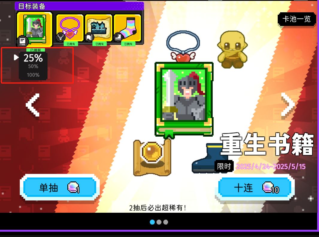 每个池子的目标装备,会随着【歪】而概率逐渐上升。