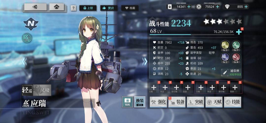 ps:我因为忘了上一星应瑞,导致截图完了才发现不是最低耗捞船,所以最后又补了一张(一星的应瑞辅助技能没满级,但不妨碍空想活到最后,由于只能上传十张图,所以没法子了)