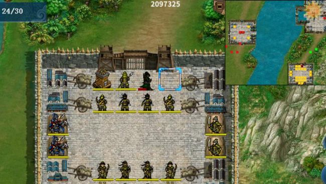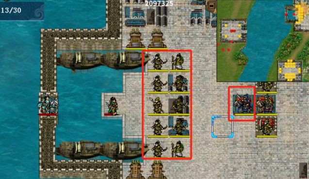 我军任意一人向右越过(31,X),6 步兵 6 枪兵伏兵,徐元朗+2 智将主动出击。