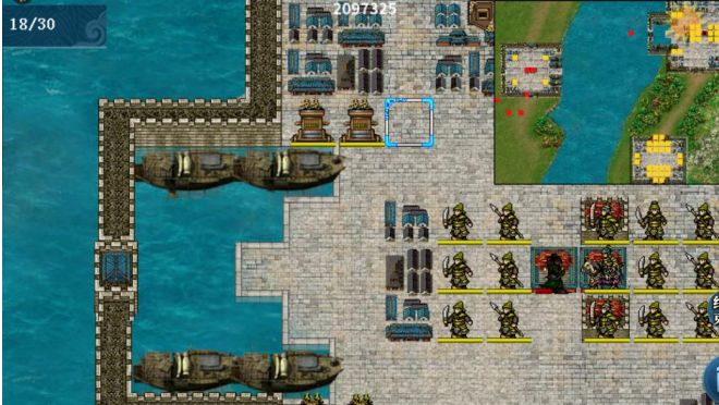 苏烈抵达(15,4)兵营后,营寨内出现大批敌军。