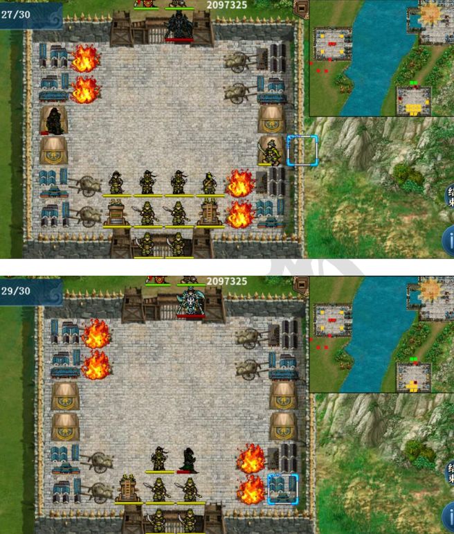 张称金、徐黑虎军抵达城门口(26,21)-(27,21),且敌军未主动出击,且城门附近无我军,