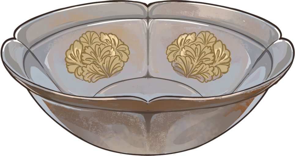 *鎏金犀牛折纸花纹四曲银碗(文物)