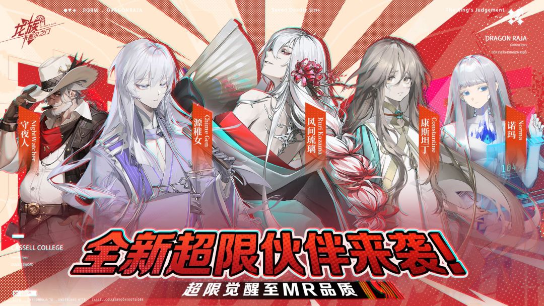 「风间琉璃」、「源稚女」、「康斯坦丁」、「诺玛」、「守夜人」五位伙伴可超限觉醒至MR品质。