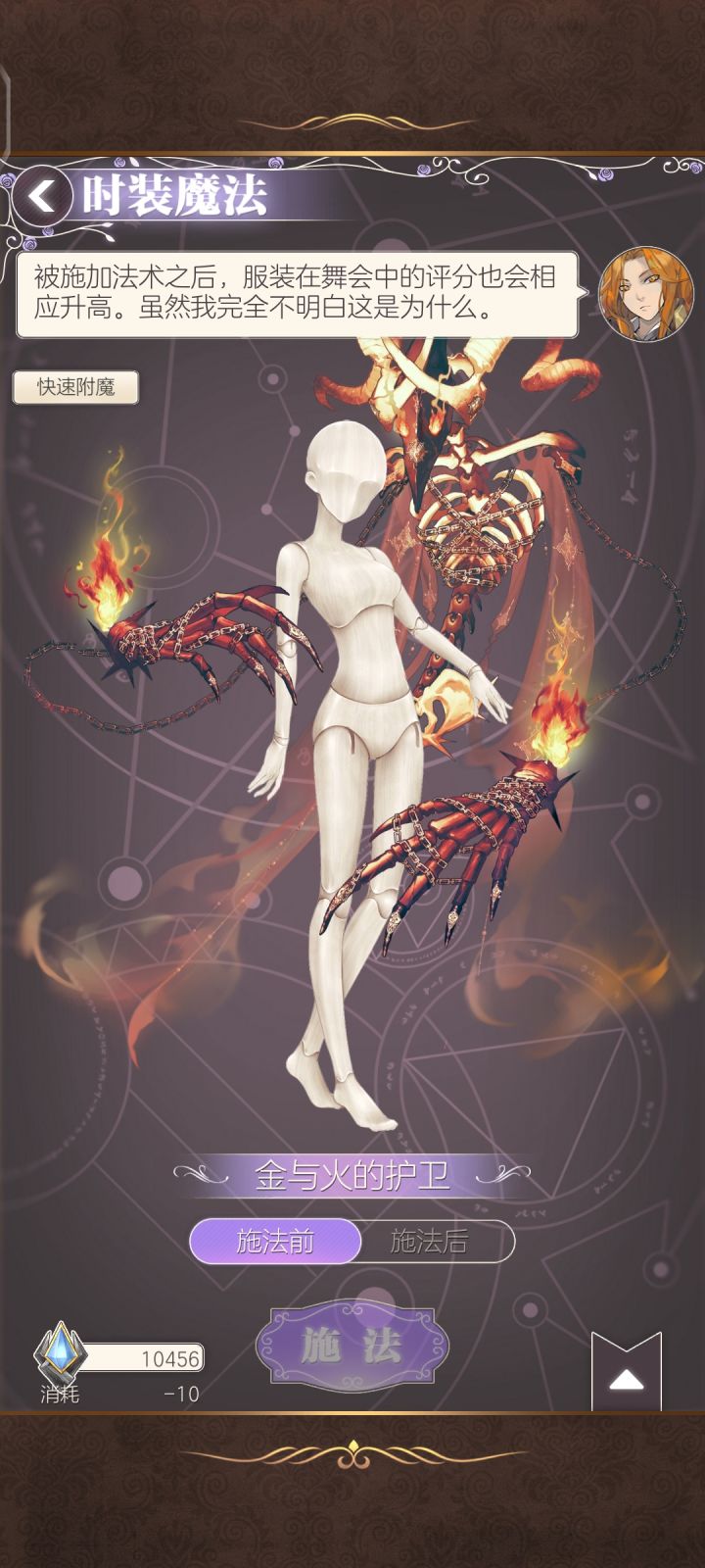 金与火的护卫可以附魔,两个散件均不可改染,且都是家具后。(在找两个部件分类的时候好像不小心卡到bug让两个同时出现了,可惜我手快一下点没了😔)
