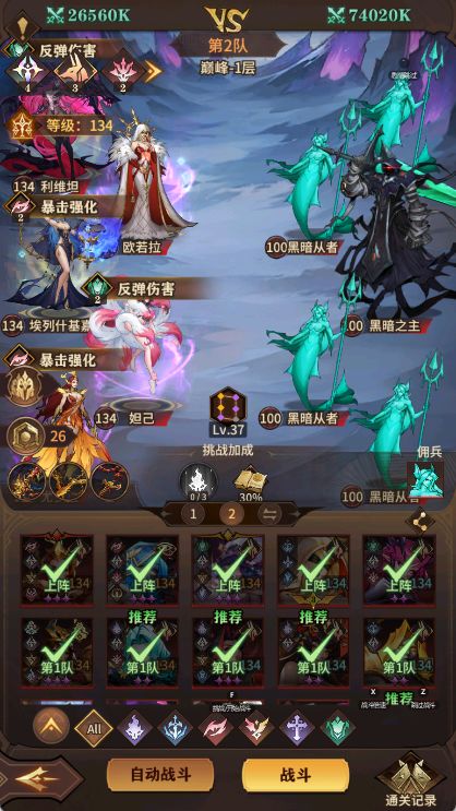 女武神战纪 远征炼狱100通关阵容