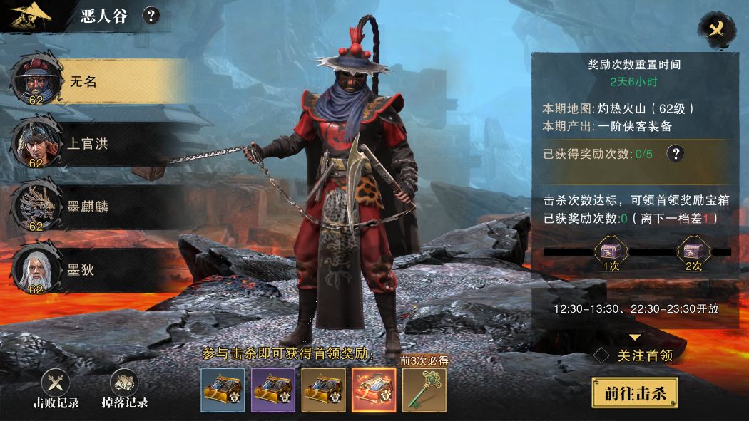 恶人谷玩法为赛季活动,七天一个赛季。玩家将在赛季内与其他大侠一同挑战强大的首领,获取侠客装备等珍贵奖励。每个赛季还有额外的恶人秘宝,等待着真正的强者开启。
