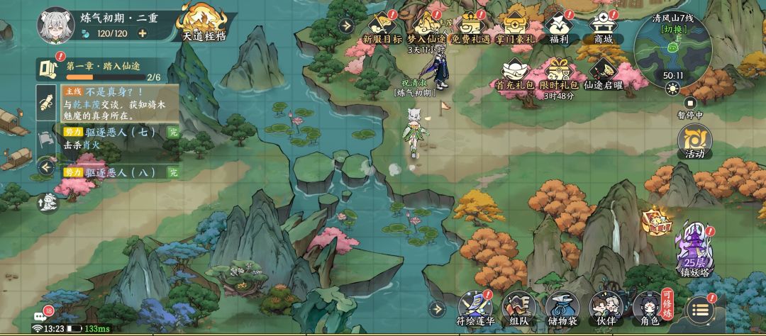 1. 进游后第一时间全力推进主线任务,熟悉游戏剧情和操作的同时,快速解锁炼妖塔这一关键玩法。