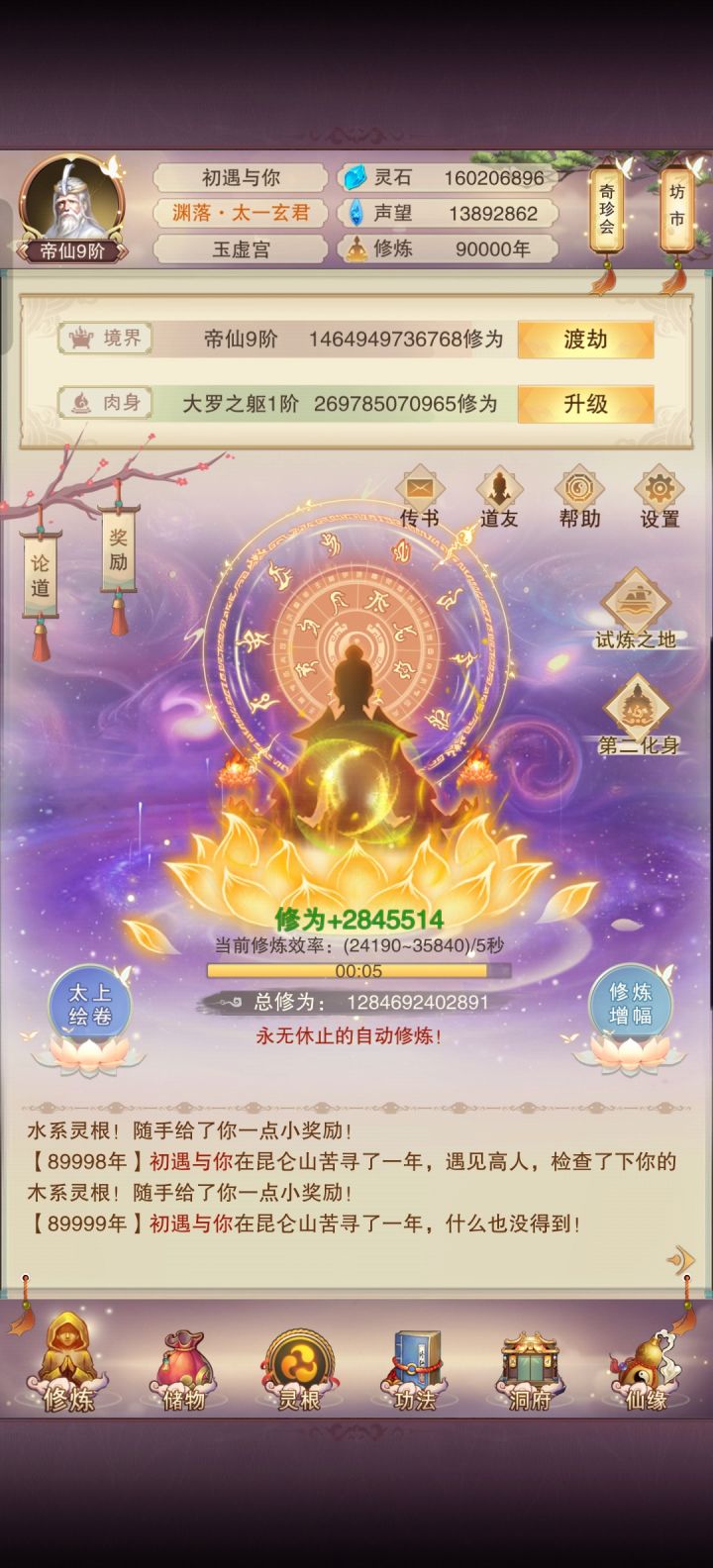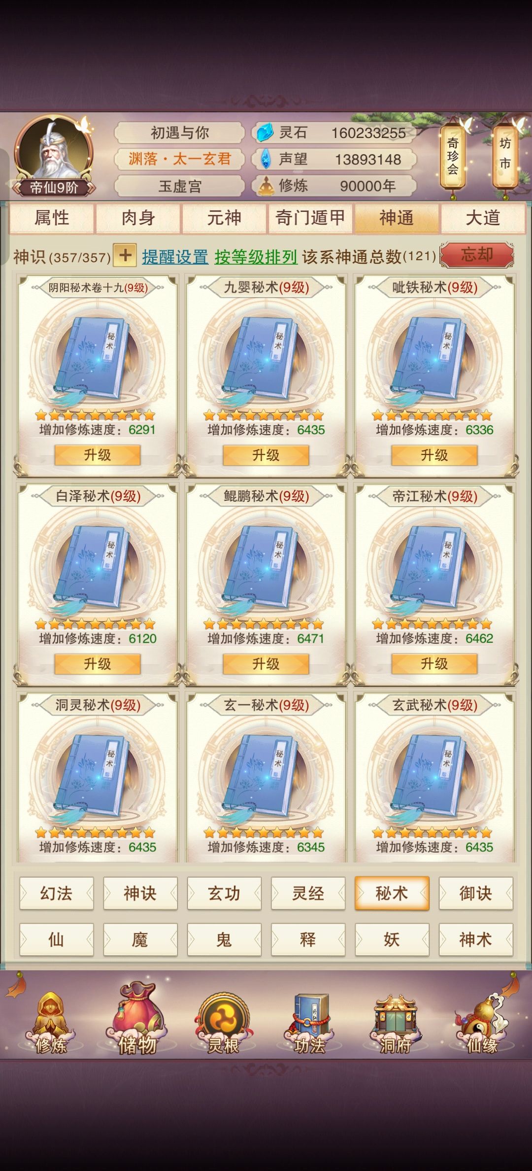 九万年修为来到了284.5一跳,对比八万年259.2万,增加了大概25万每跳,天密已经八万年前买完,低星神通秘术也基本学完,修为暂时可以说是到瓶颈了,高星秘术需要神识消耗太高,一万年下来新增不了多少,可以再十万年前到达准圣了