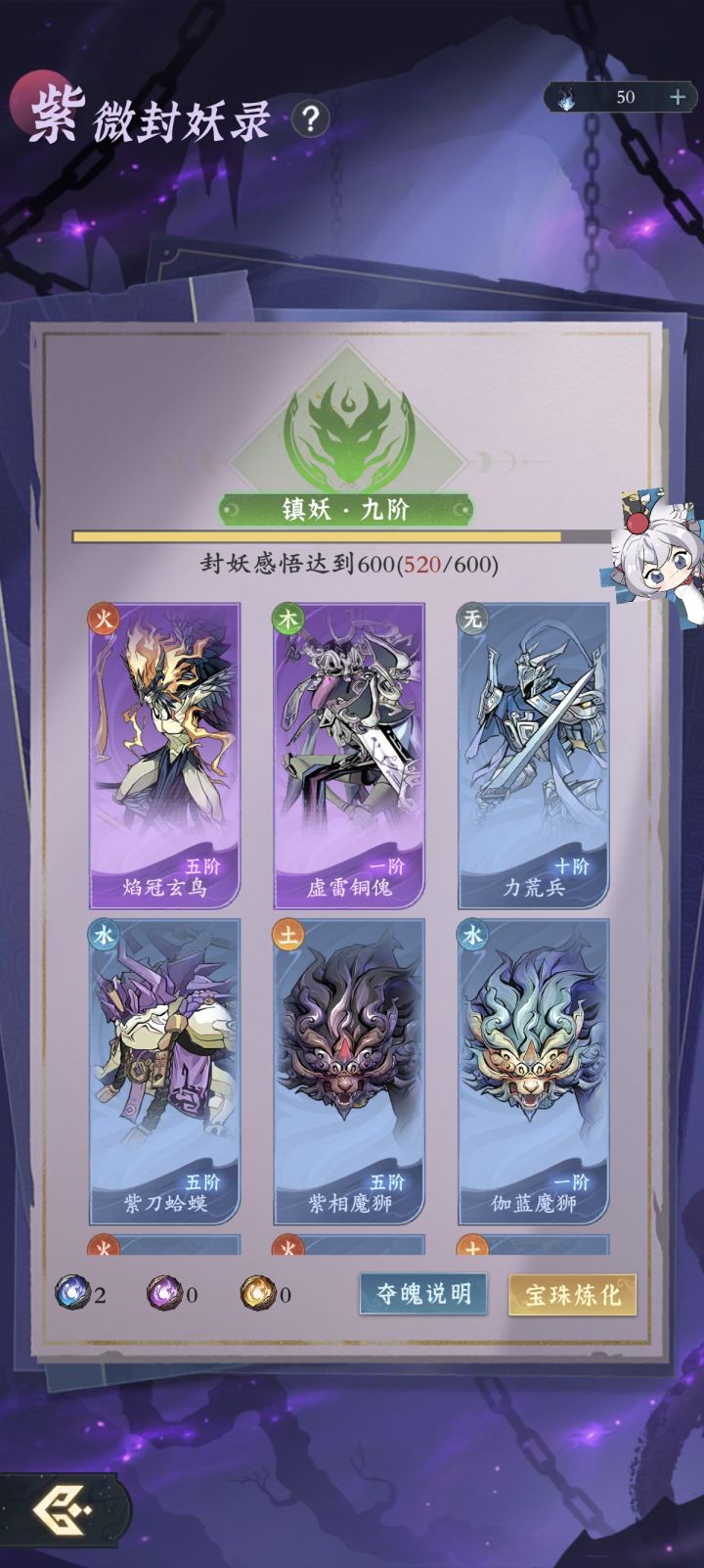 总结:优先抓取出战灵兽相同属性的妖兽,之后再去抓满蓝色,蓝色满了,抓紫色。