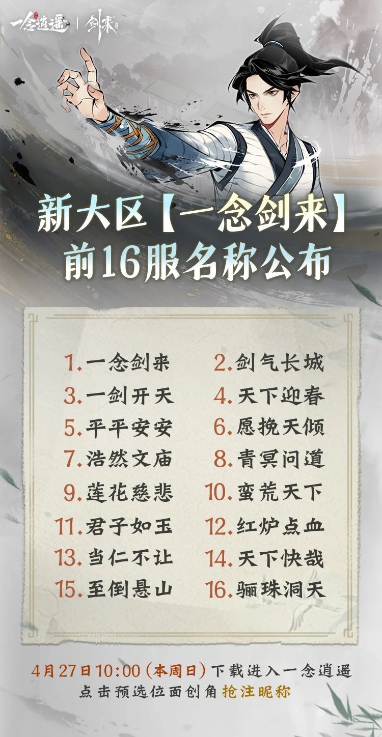 距离剑来联动大区【一念剑来】开放仅剩一周!大区前16服名称首曝!