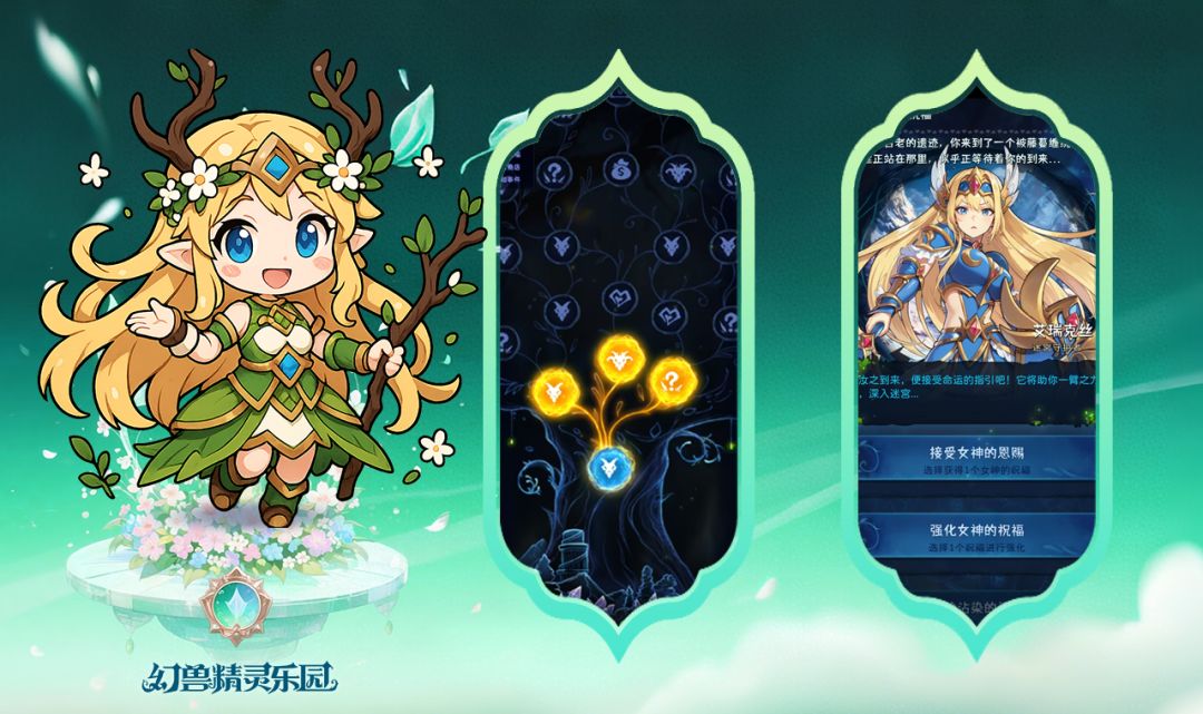 战斗结束之后别着急,时不时随机掉出来三选一祝福BUFF,想直接提升战力值,还是给幻兽加点回血BUFF,或者干脆给已有的BUFF拉满等级,全看你当前心情的美丽程度。多多私下敲黑板,当其中有一个祝福的颜色与其他的不一样时,你一定多看两眼(你肯定懂)