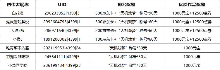 恭喜以下创作者获得奖励~