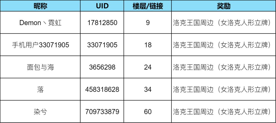 根据综合互动(含点赞、楼中楼评论-不含楼主数)排名前5位的小洛克送出洛克王国周边(女洛克人形立牌)*1/人,如互动数相同,则按照内容质量进行评定。
