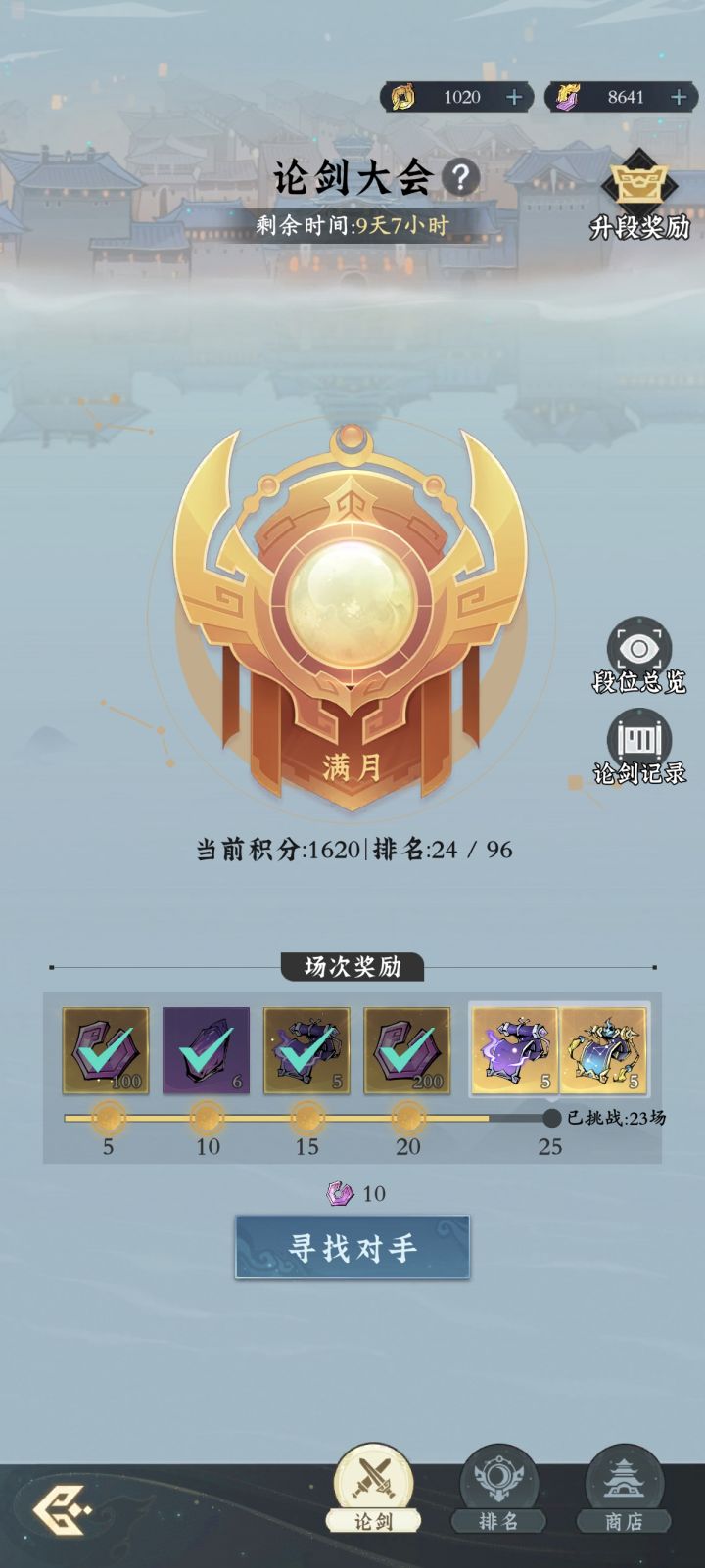 我们可以看到,论剑大会的排行榜分为满月、盈月、弦月、新月。对应着月亮不同时间下变化的名字。除了满月以外其他三榜只要积分达标,就可以一直在榜单上,对于人数并没有限制。而到了满月榜,开始对人数有了限制,满月榜最多只有96人,96之后修士会掉到盈月榜。因此有不少修士会苦恼明明白天在满月榜单,可是第二天登录,发现被人偷榜偷偷打下去,以至于损失了很多的论剑石奖励。
