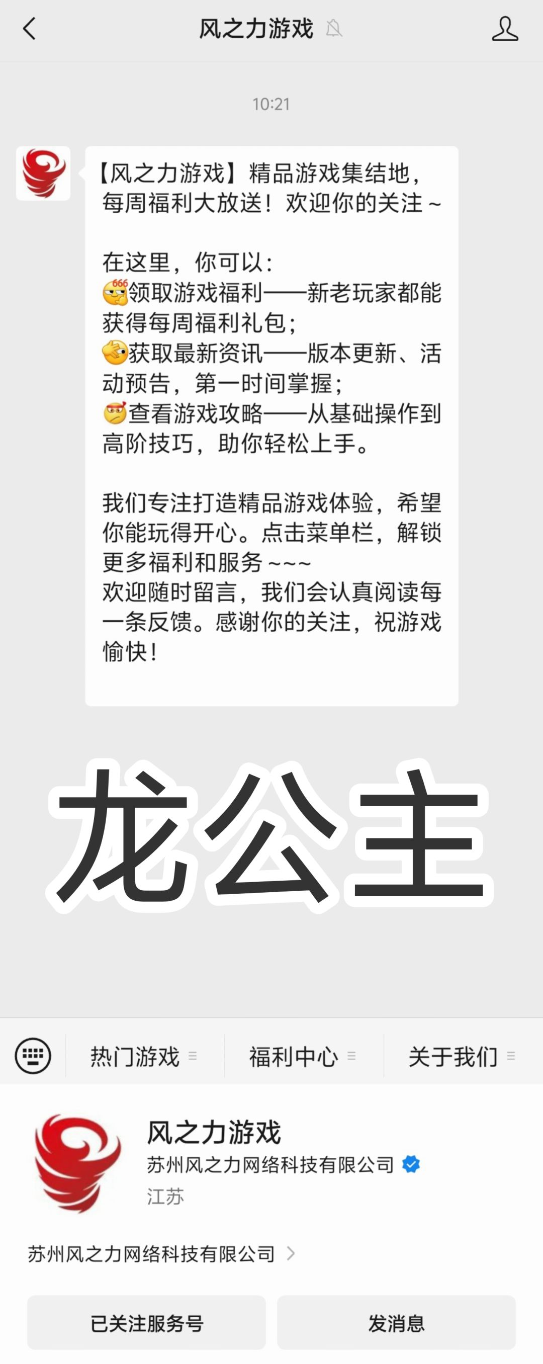 在评论区留言回复关注《风之力游戏》服务号的截图。