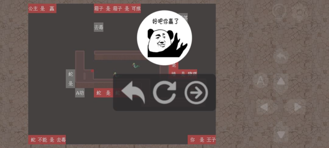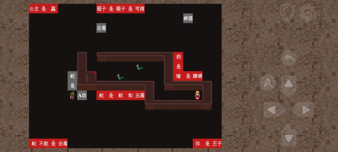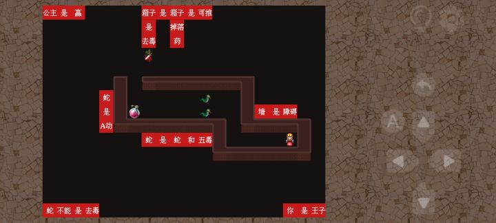 3、按图3所示,组成“药是墙”,再去破坏“蛇是A动”。