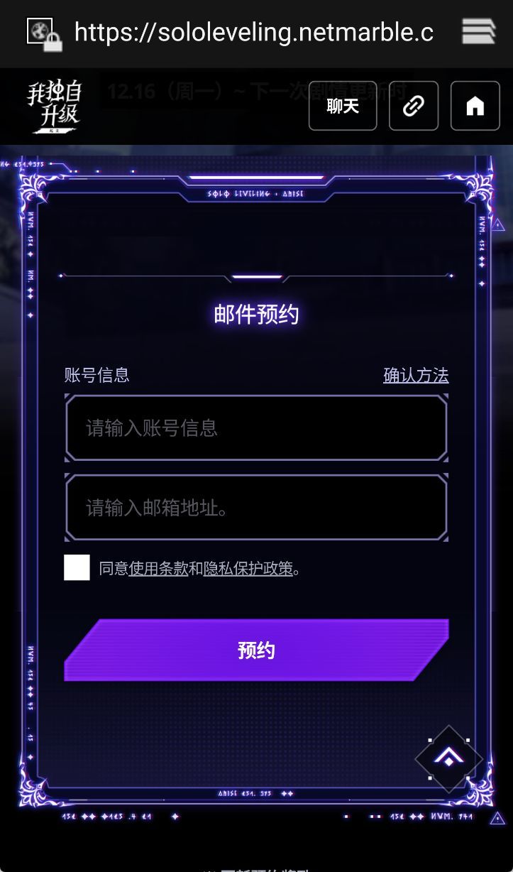 进入官网输入【游戏账号】以及【邮箱账号】即可完成预约