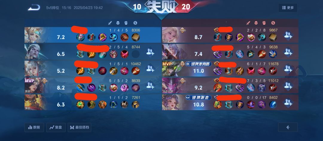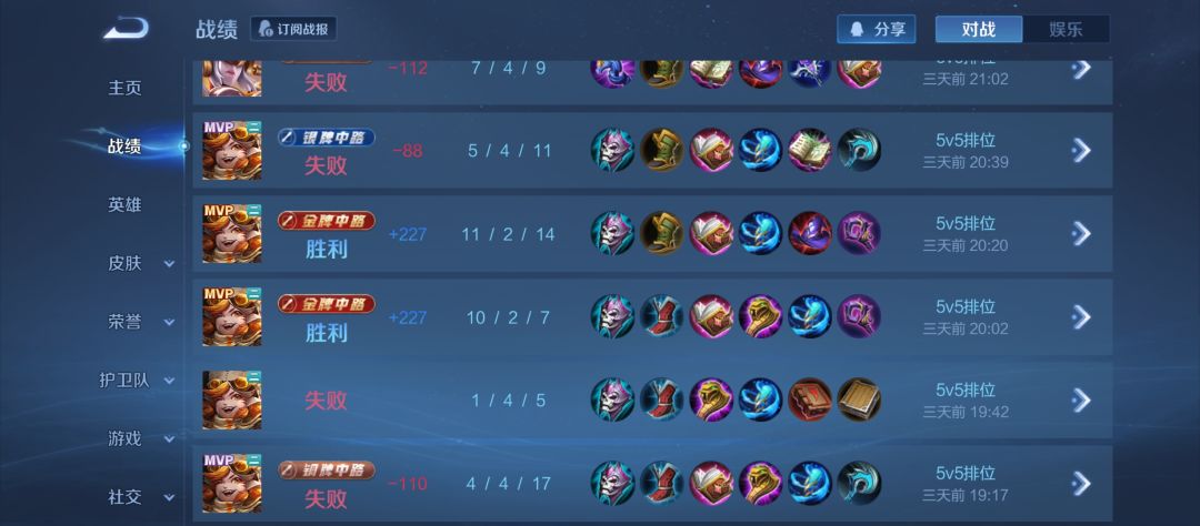 还有就是必输局,被碾压局,平均每条路都被压了2-3的评分就是必输局,第二把就是必输局。