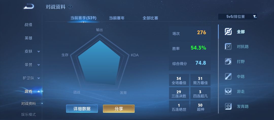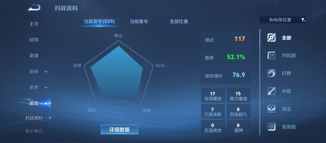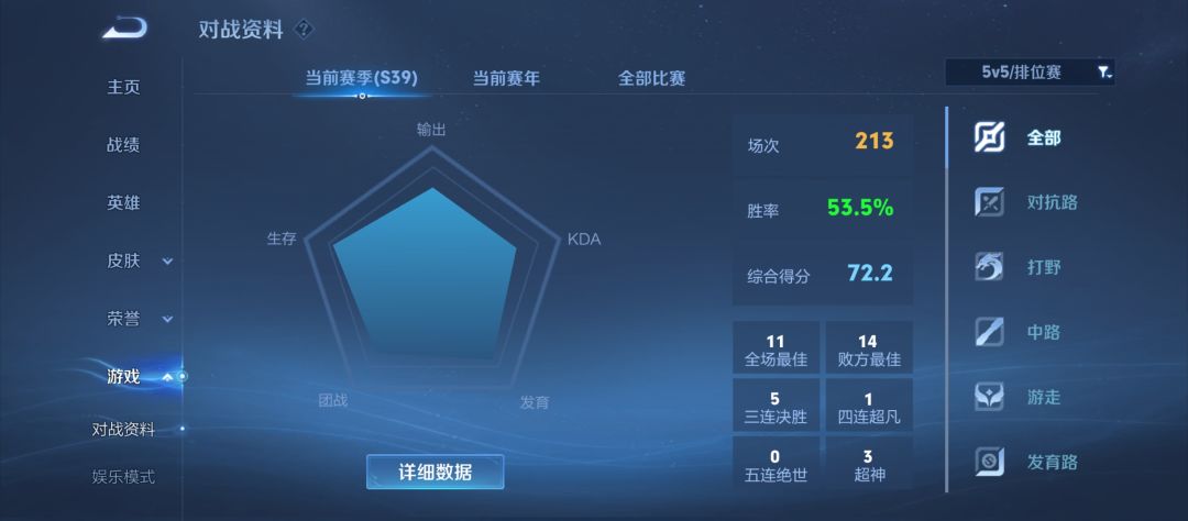 且每个英雄都没有超过100场的练度,均50左右,超过100把的英雄本人少玩,300把后基本不碰。