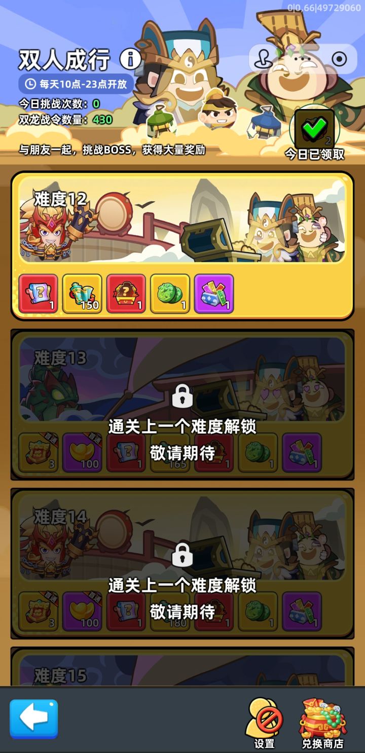 双人模式一直不能开下一个难度是为什么,12难度我是通关过得,有还有什么隐藏条件吗