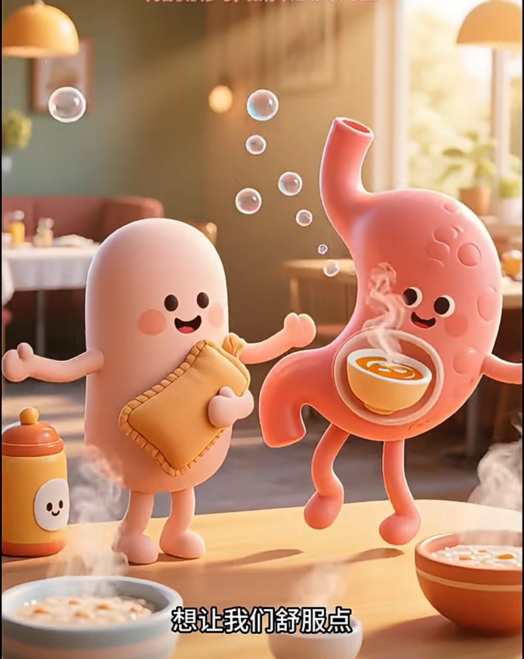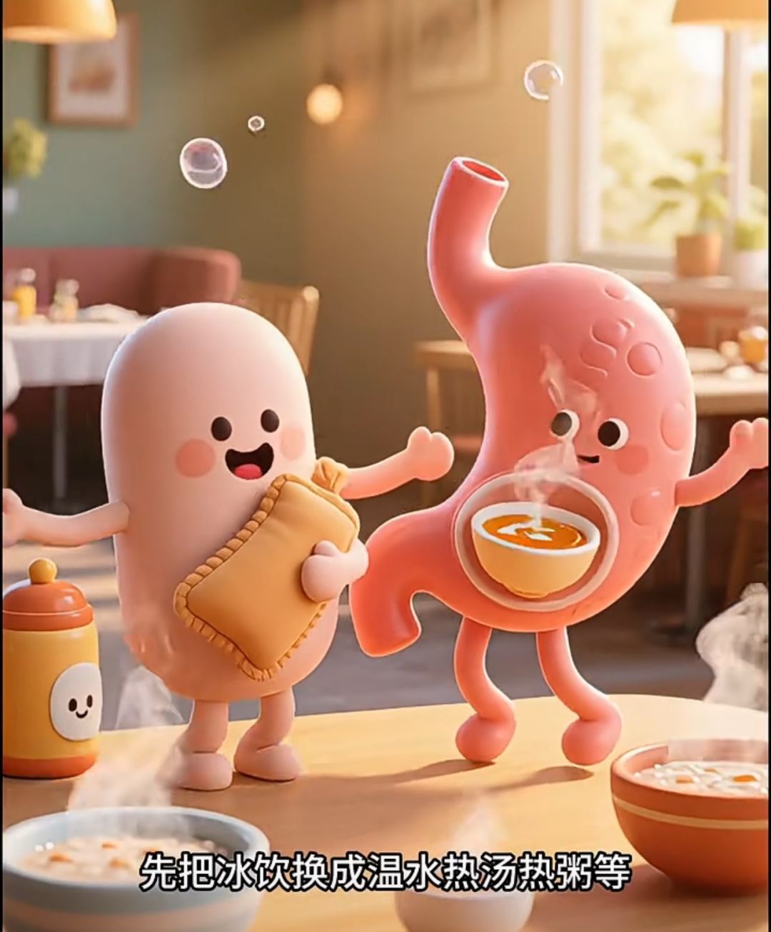 想让我们舒服点,先把冰饮换成温水热汤热粥,别赶时间,要细嚼慢咽,别饥一顿饱一顿,对我们好一点。